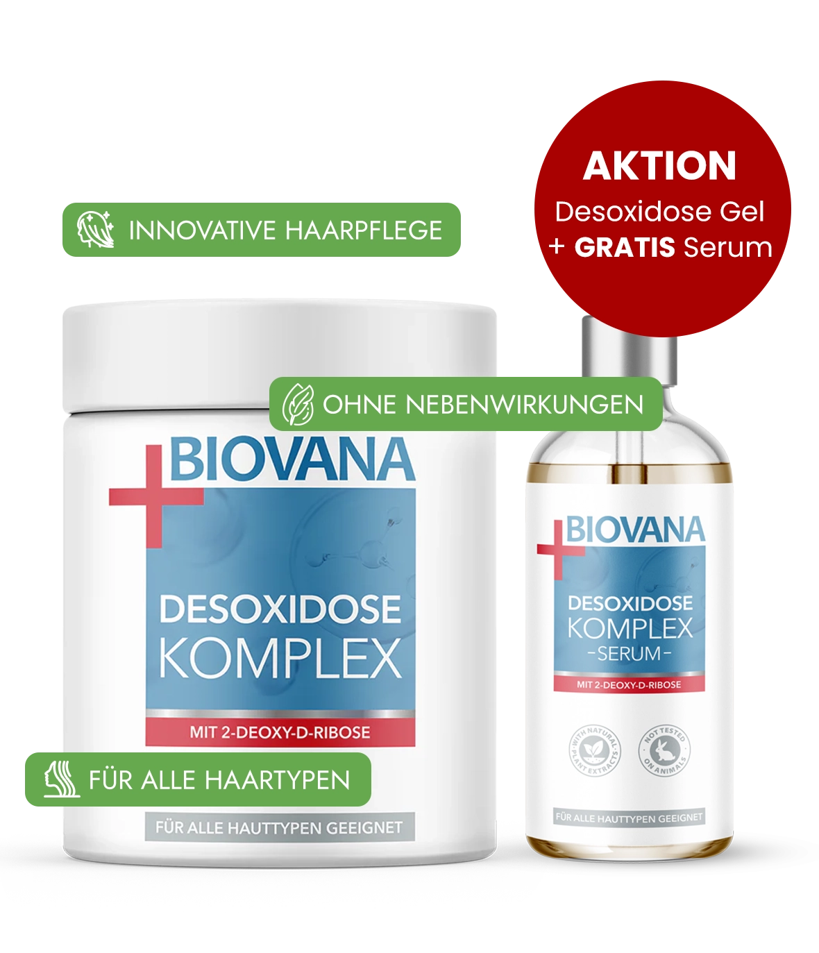 Biovana Desoxidose ist das erste Haarpflegeprodukt, das diese innovative Substanz in Form eines leichten Gels einsetzt. Die fortschrittliche Formel verbindet die regenerierende Kraft der 2-Deoxy-D-Ribose mit wertvollen pflanzlichen Inhaltsstoffen wie Aloe Vera, Bitterorange und Ginkgo Biloba, die beruhigen, stärken und für sichtbar gesundes Haar sorgen.